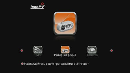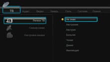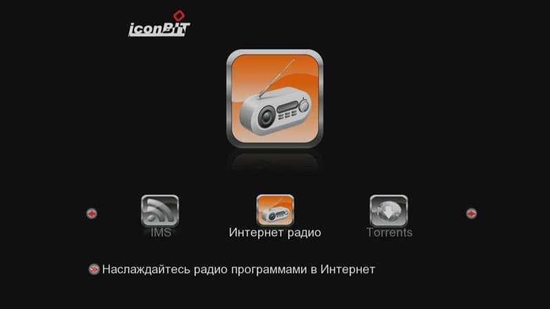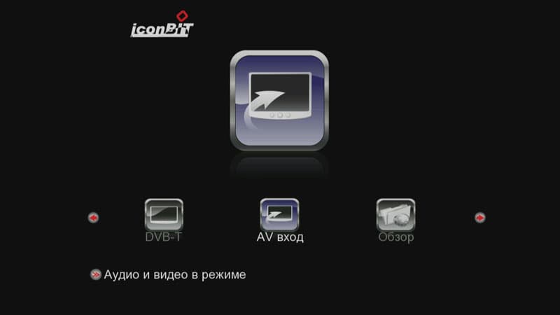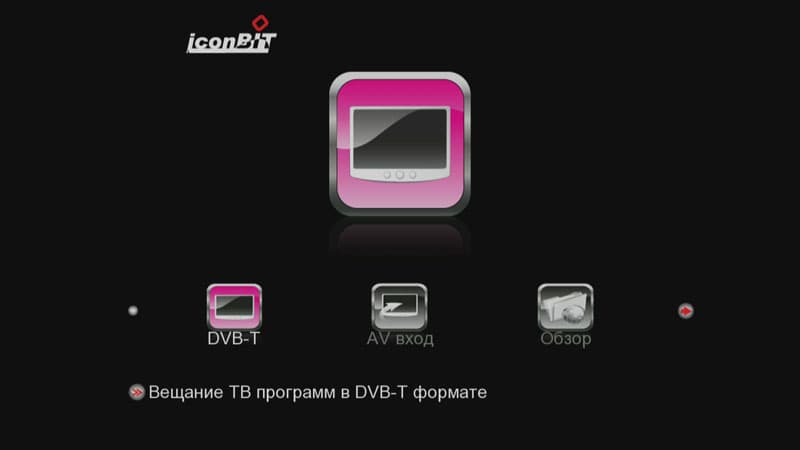 Главное меню плеера состоит из десяти иконок, активной по умолчанию является самая первая в пролистываемом списке — DVB-T.