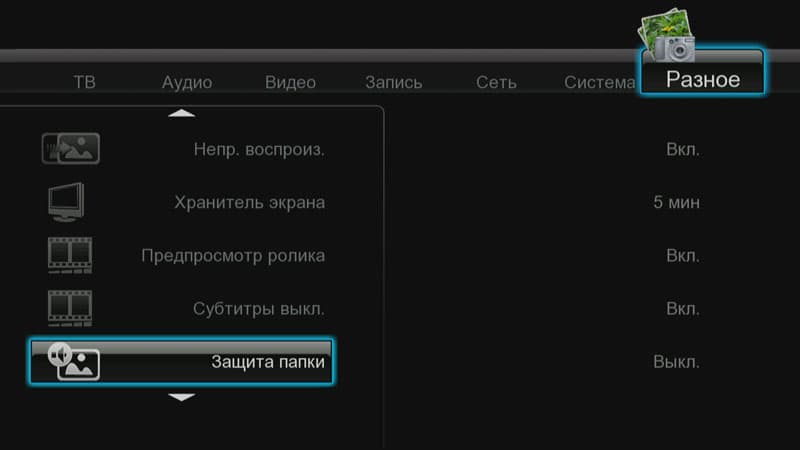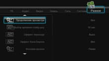 … установить родительский контроль над аппаратом, введя свой пароль, включить автовоспроизведение с оптических носителей, обновить прошивку, сбросить настройки до заводских значений | Последний пункт настроек включает в себя параметры слайдшоу, выбор переходов и фоновой музыки… | … изменение режима воспроизведения, время активации экранной заставки и т. д. |