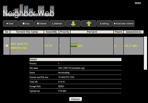 Торрент-клиент в данном плеере управляется с помощью знакомого по некоторым другим плеерам веб-клиента Neighbor.