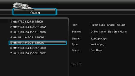 Интернет-радиостанции, присутствующие в списке, разбиты на категории по станциям и жанрам, присутствует поиск станций по названию. Любую из найденных станций можно добавить в избранное, с тем чтобы впоследствии быстро её вызвать.