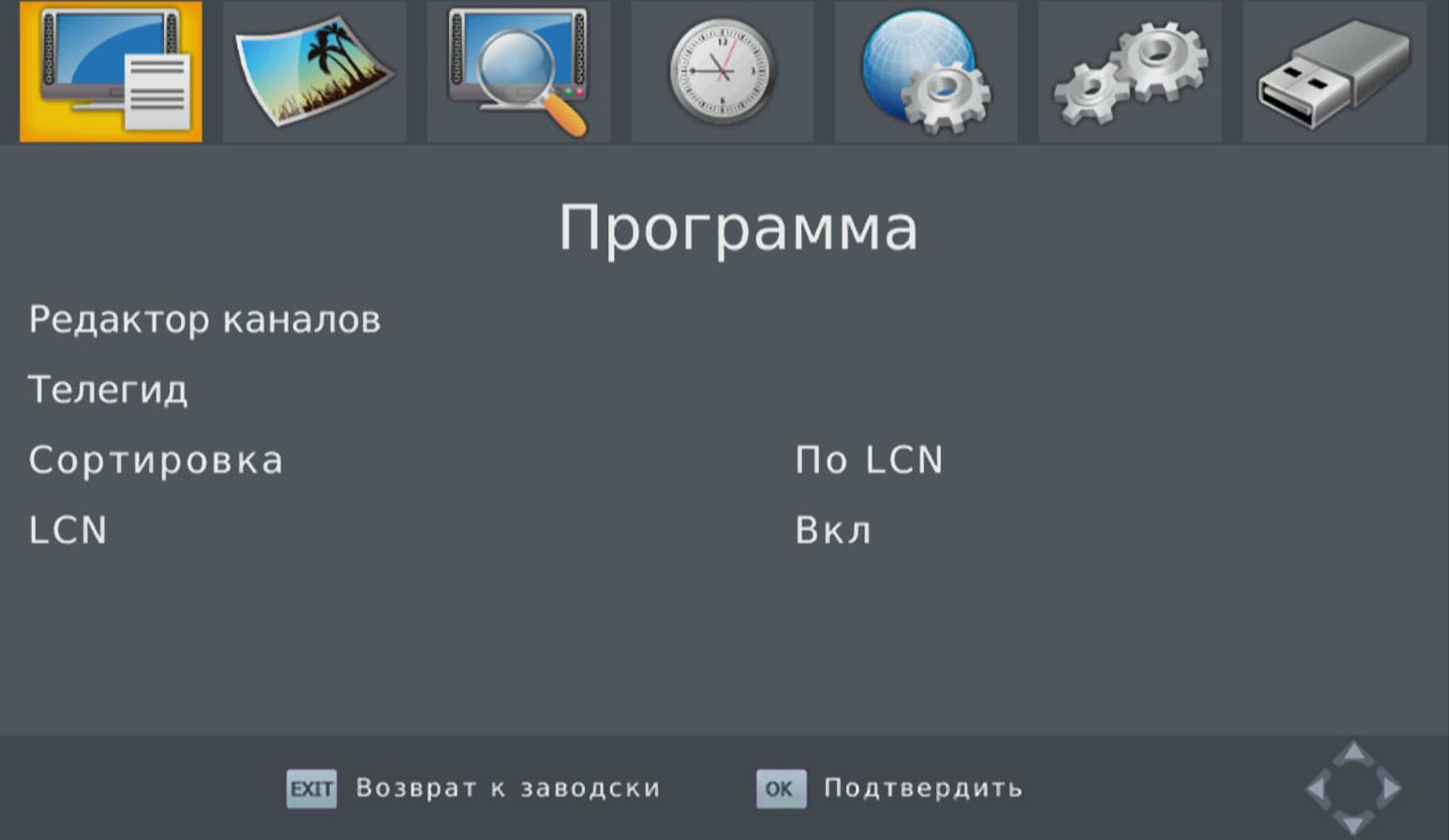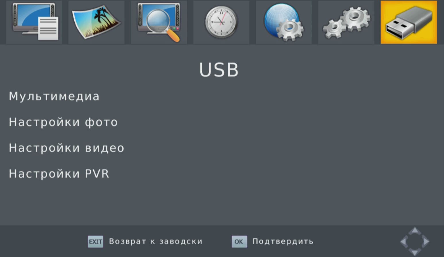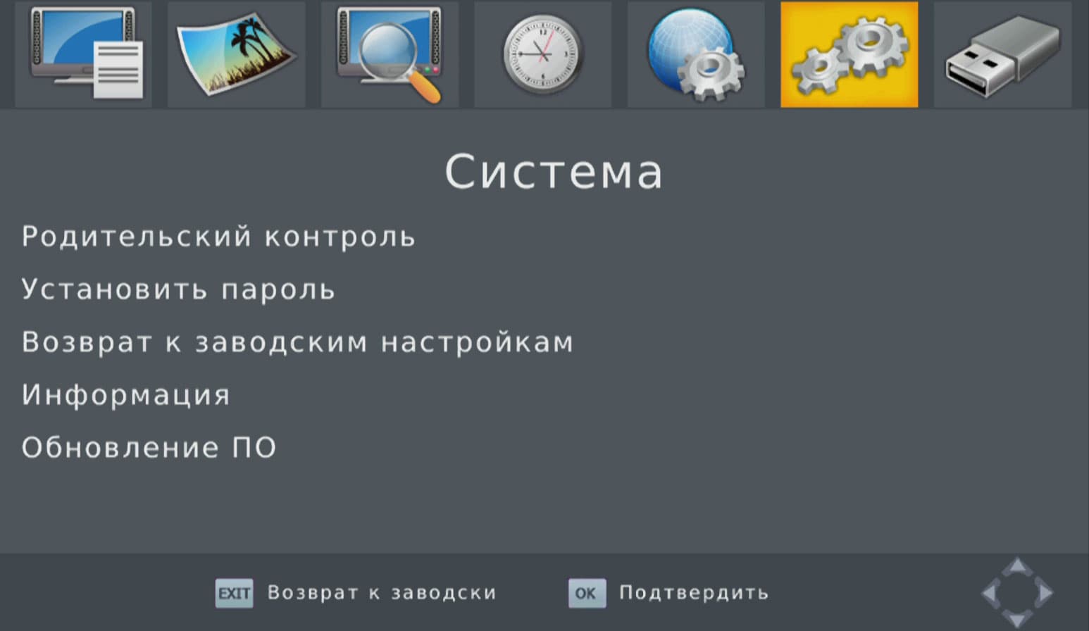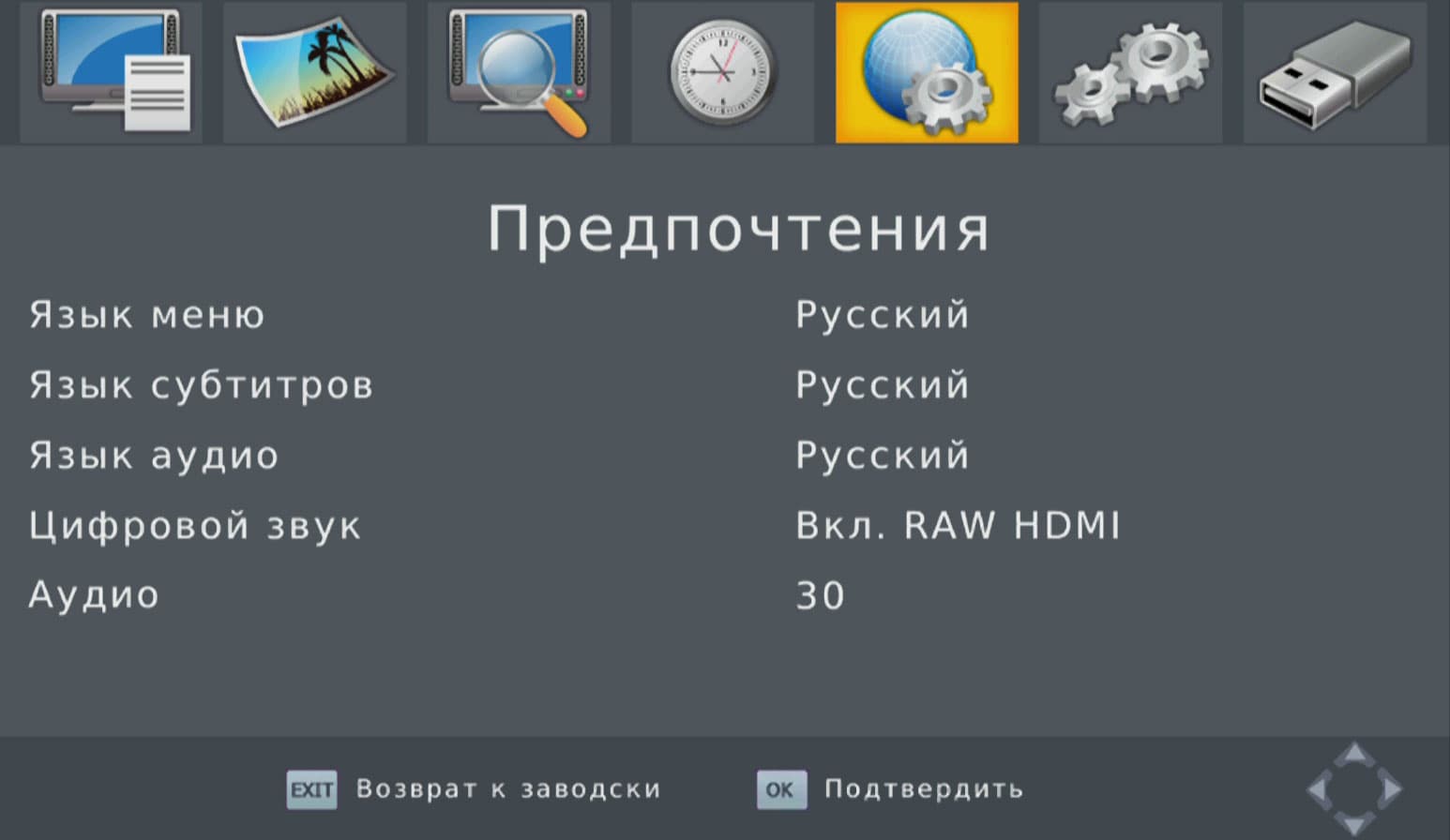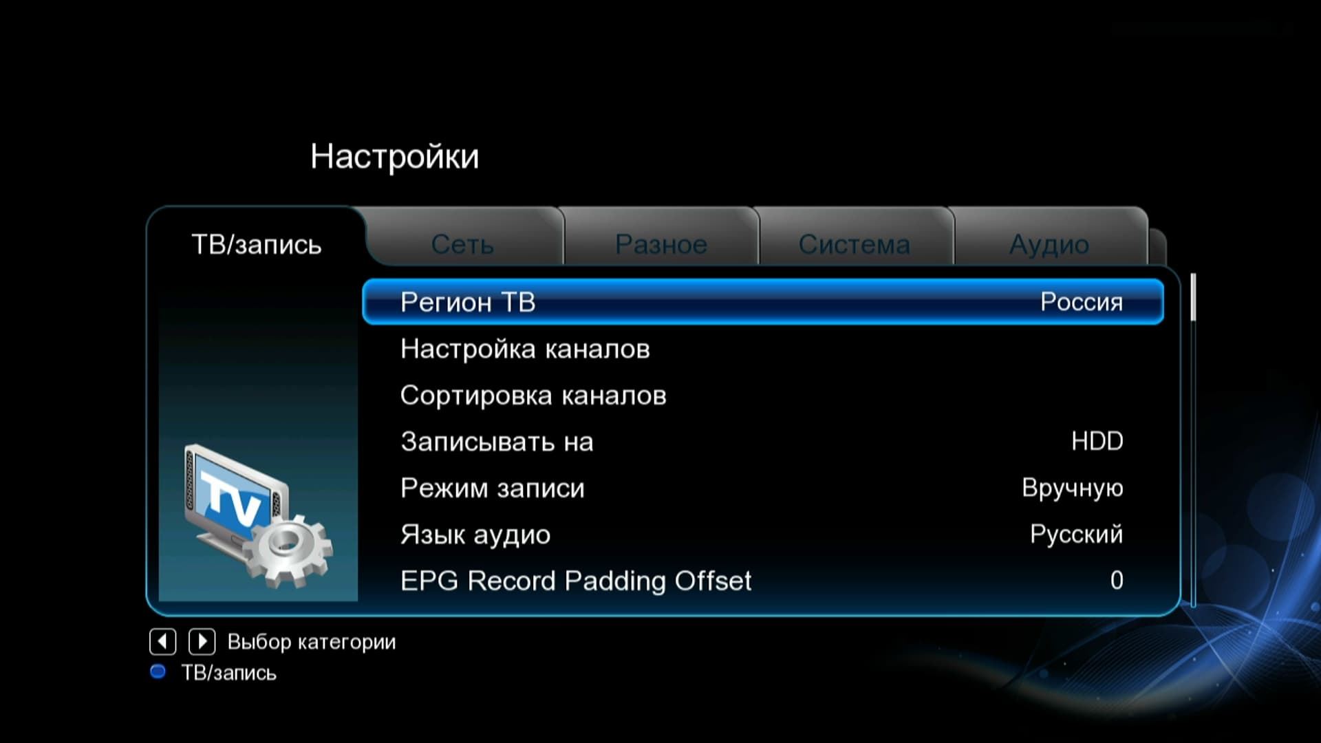 Да, это ведь телеприставка, и режим ТВ-тюнера здесь активирован по умолчанию! А тюнеру, по всей видимости, необходим цифровой ТВ-сигнал. Увы, сейчас мы находимся в местности, где цифровое ТВ появится не раньше, чем когда оно появится везде. Ничего страшного, для исследования ТВ-способностей приставки мы съездим туда, где эфир заполнен цифрами, и опишем впечатления от цифроТВ в соответствующей главе статьи. А пока изучим настройки приставки — мало ли, какие подводные камни тут имеются…
