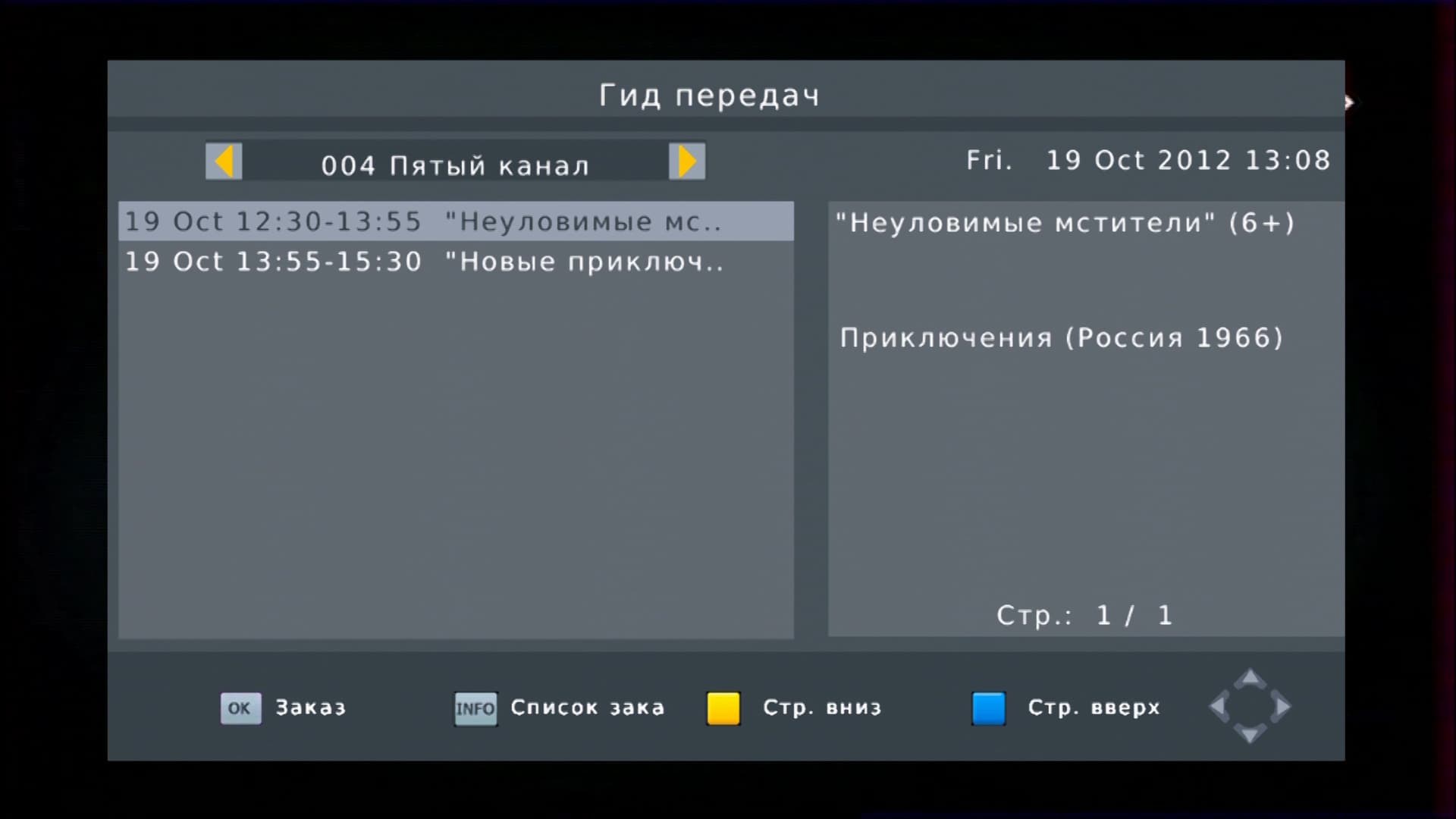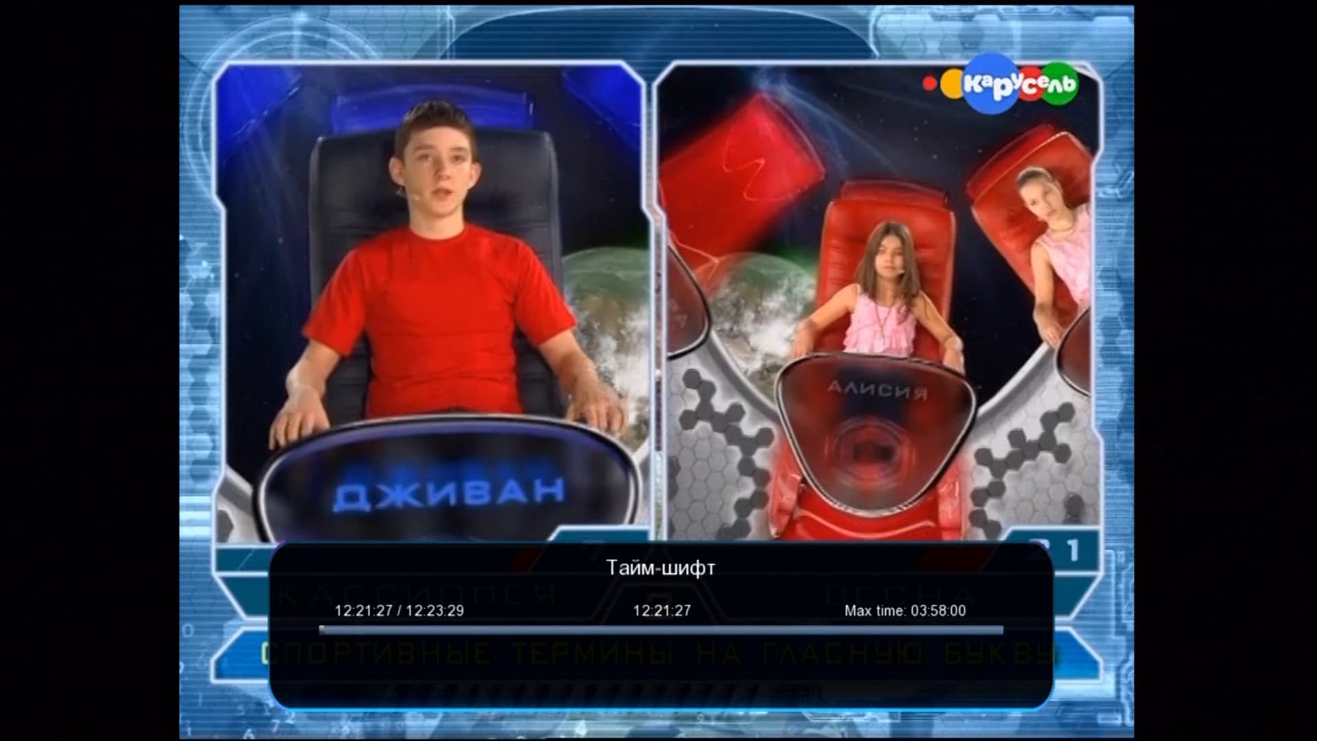 Во время просмотра цифрового ТВ пользователь имеет возможность увидеть информацию о канале, оставшемся свободном месте на диске, включить отображение титров (этих титров пока в нашей трансляции, по всей видимости, нет).