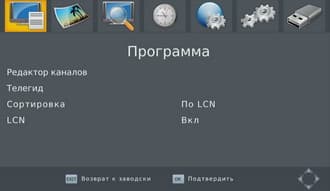 Непосредственно во время просмотра можно вызвать пункты главного меню плеера для быстрого перехода в нужный раздел. Сортировка найденных программ становится возможной в настройках аппарата.