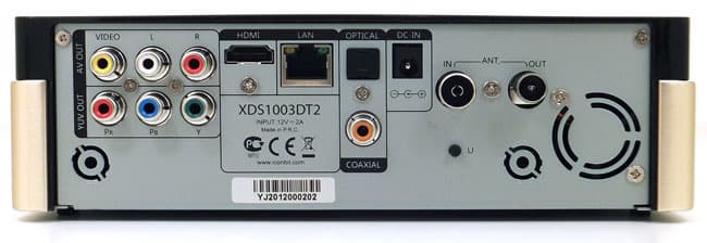 Задняя панель отличается от прежней версии плеера наличием антенных разъёмов, а полный список интерфейсов, расположенных здесь, выглядит следующим образом: