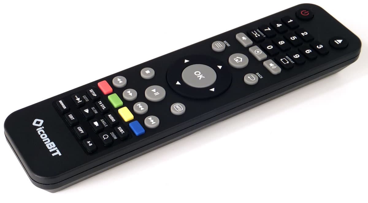 Пульт дистанционного управления имеет чуть угловатую форму и радует плоскими резиновыми кнопками, имеющими малый ход. Наверное, тут только подсветки не хватает или хотя бы миниатюрного светодиодного индикатора нажатий. Но это излишние запросы, наверное… Тем более что плеер сам сигнализирует о нажатиях миганием синего светодиода, более того — в настройках плеера пользователь имеет возможность озвучить нажатия кнопок. Так, как это сделано во всех Android-устройствах.