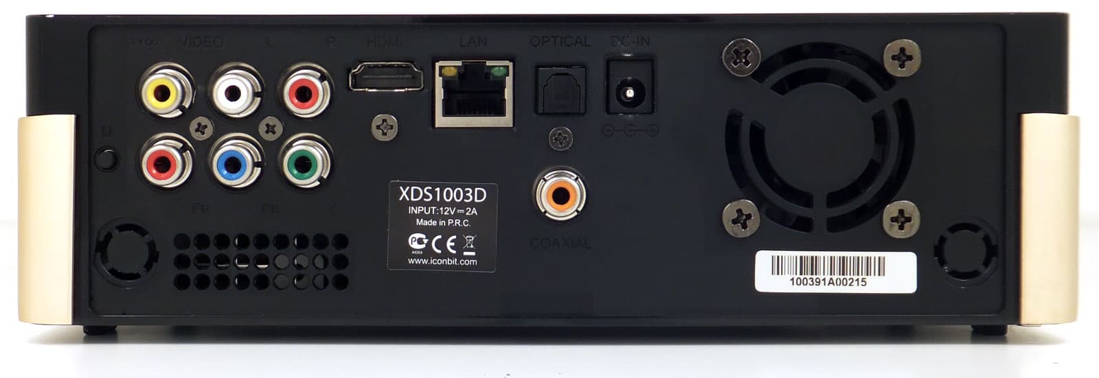Задняя панель — традиционно место монтирования редко используемых разъёмов. Здесь имеется полный перечень необходимых интерфейсов, с помощью которых плеер можно подсоединить к любым бытовым устройствам отображения видео или усиления звука: