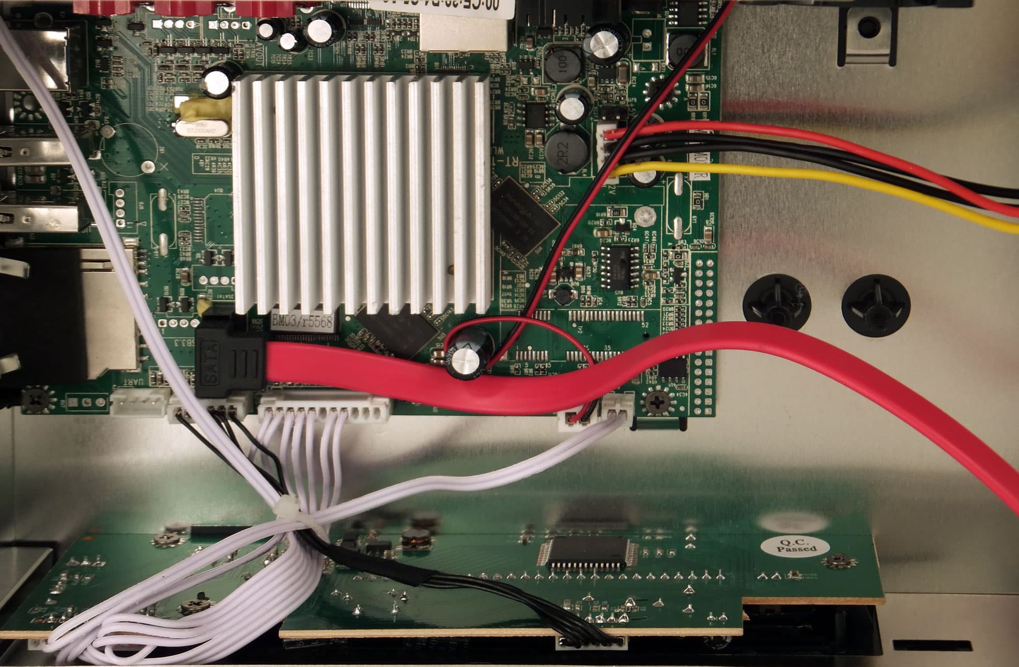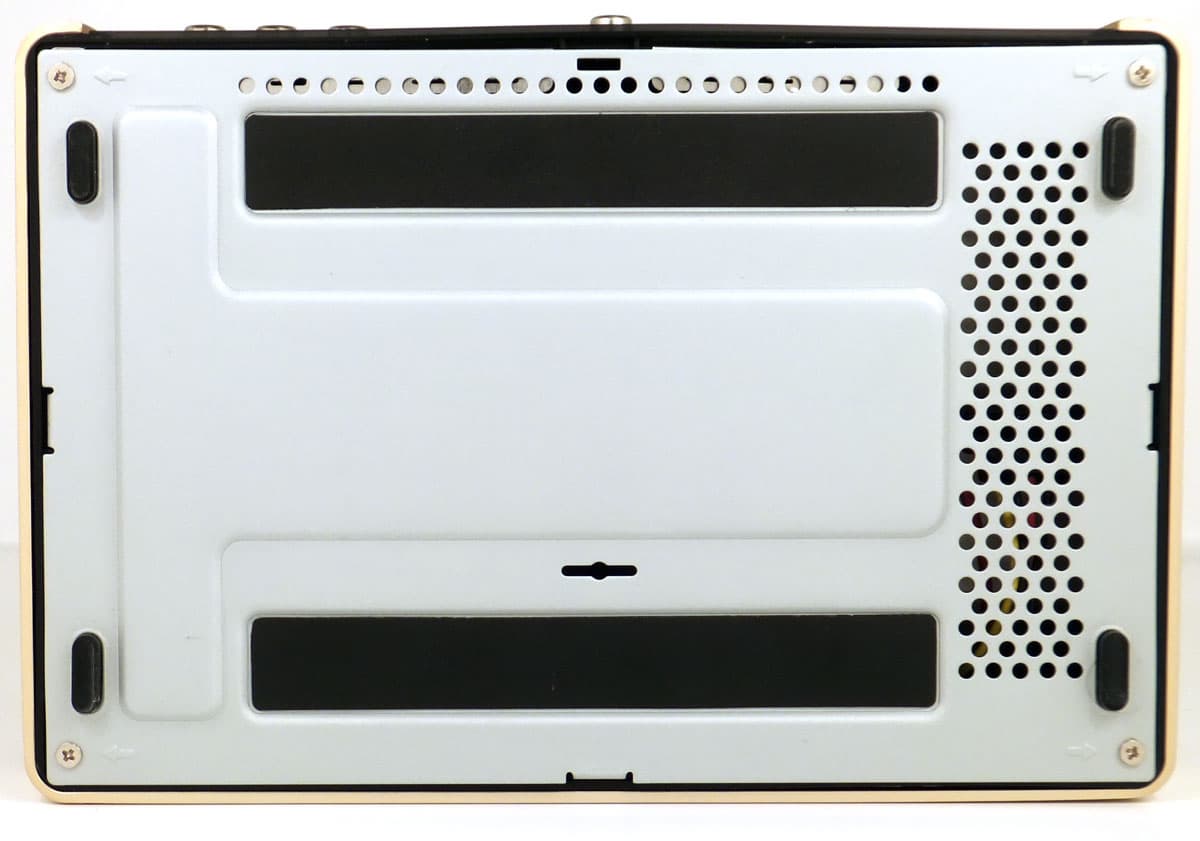 Дно плеера выштамповано из металла с гнутым для прочности профилем и небольшим количеством перфорации. Через эти отверстия забирается воздух, охлаждающий жёсткий диск и прочую электронную начинку.