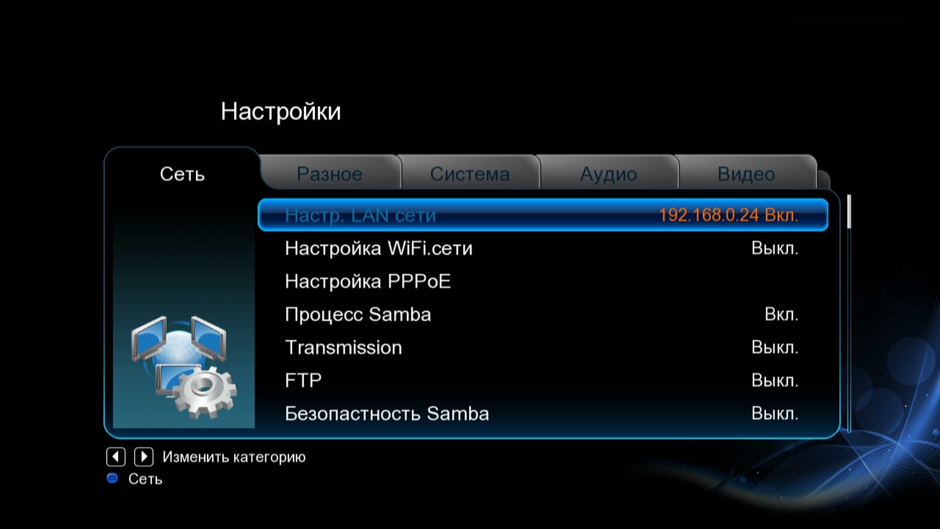 Но всем перечисленным обновки от расширенной версии прошивки не заканчиваются. После её установки в главном меню плеера появляется ещё один пункт: IPTV.