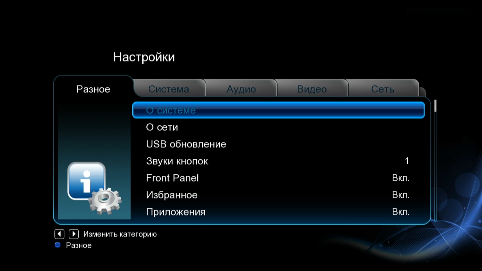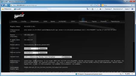 | В последнем пункте имеется возможность просмотреть информацию о системе, состоянии сети, обновить прошивку |