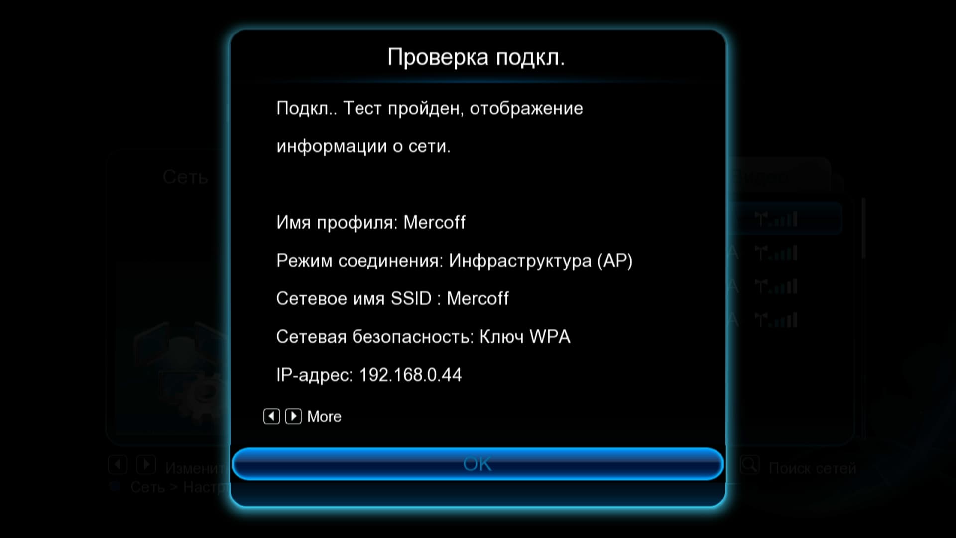 Ну а что с беспроводной сетью? Плеер беспрекословно заработал с имеющимся у нас адаптером Wi-Fi USB (Canyon CNP-WF518N2), соединившись с маршрутизатором на максимально возможной скорости IEEE 802.11n.