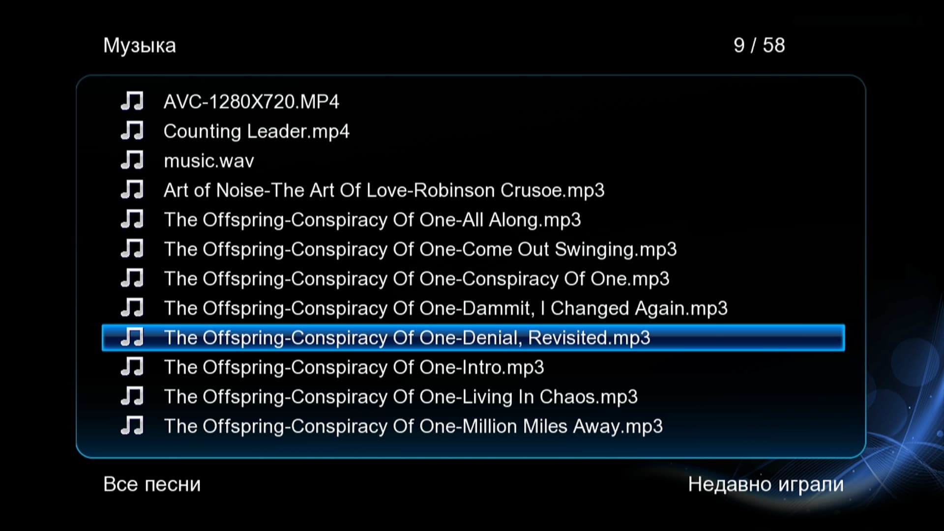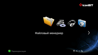 Для быстрой работы такого сортировщика плеер оснащён механизмом индексации файлов, находящихся на жёстком диске. Эту индексацию можно активировать вручную, зайдя в главное меню плеера и нажав знакомую нам зелёную кнопку на пульте дистанционного управления.