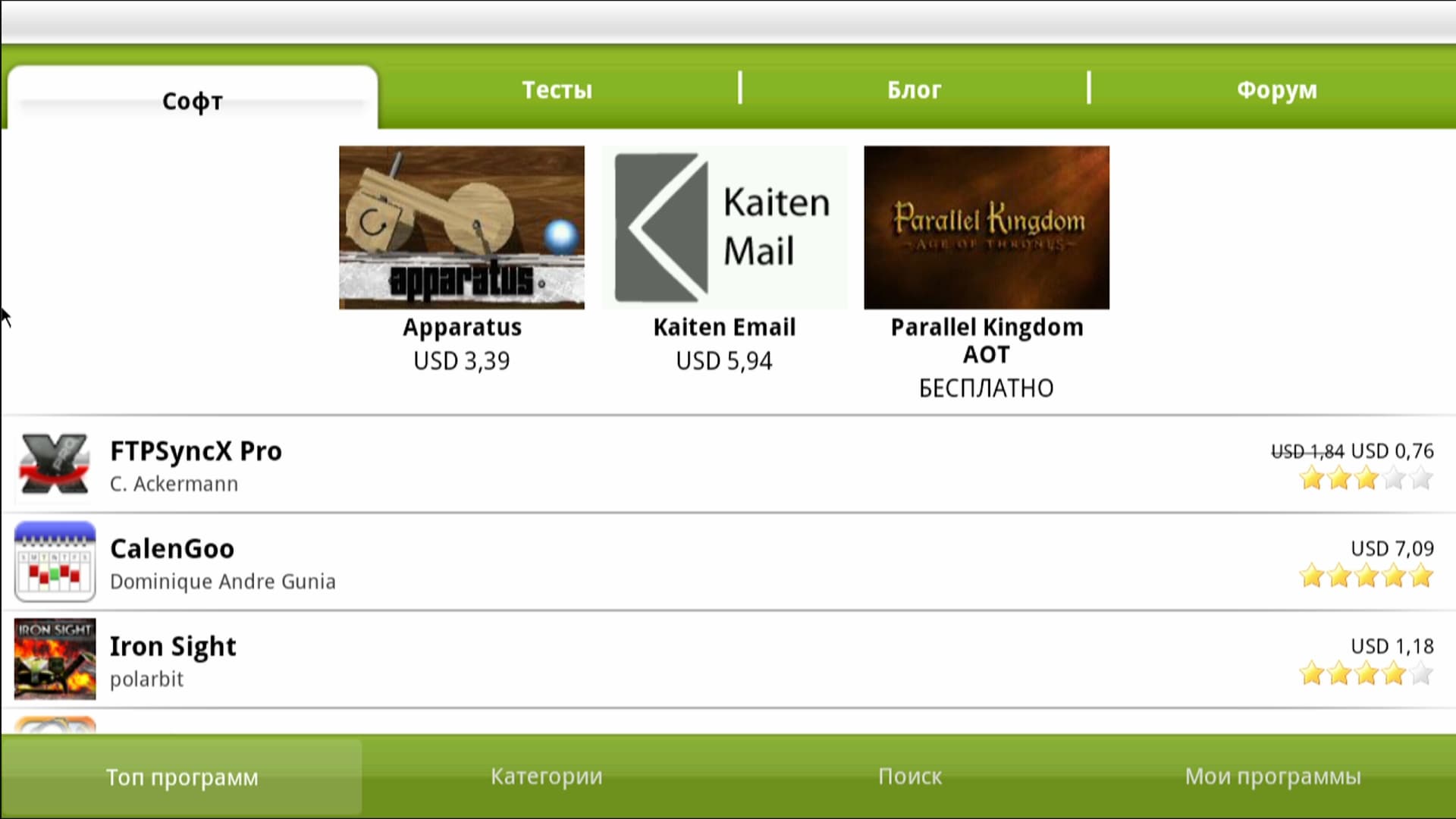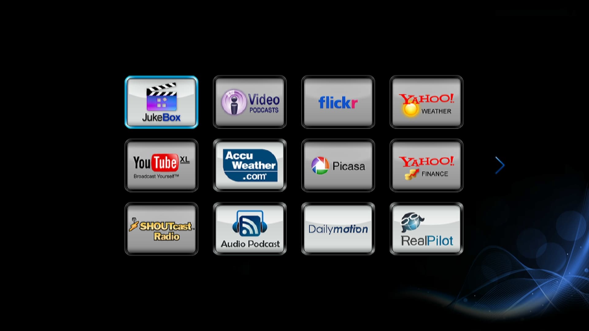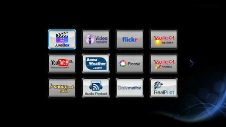 За Избранным следует пункт Приложения, содержащий такие популярные ресурсы, как YouTube, SHOUTcast Radio, Picasa и прочие Yahoo! Finance.
