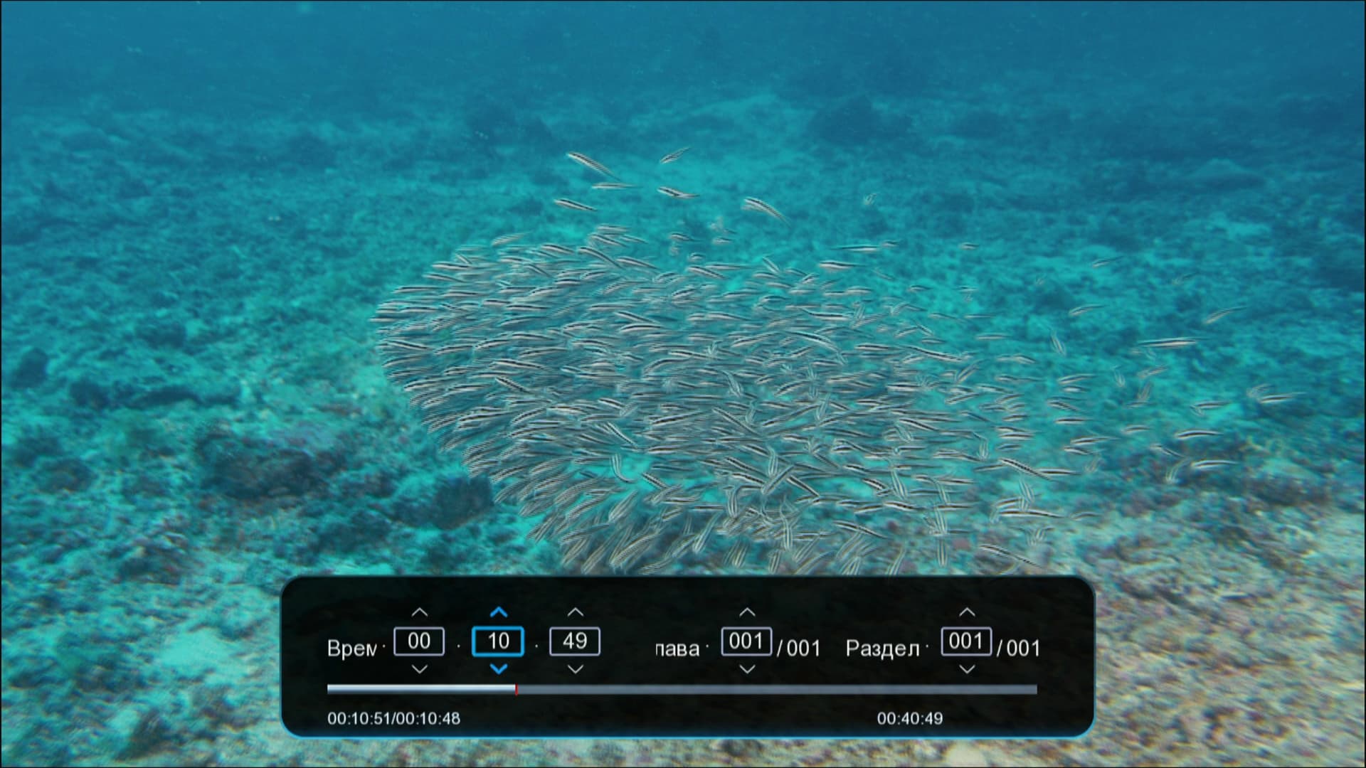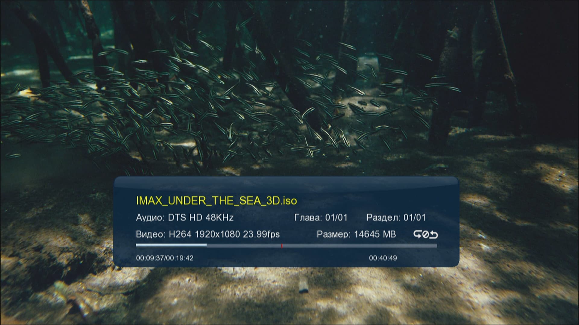 | Навигация по файлу, просмотр его свойств | Выбор аудиодорожки |