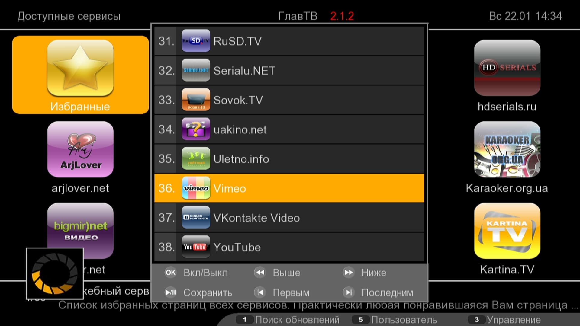Для использования сервиса ГлавТВ прежде всего следует пройти бесплатную регистрацию на его сайте. После этого пользователю станут доступны каналы, предлагаемые данным сервисом. А их тут видимо-невидимо. Удобно то, что пользователю, залогиненному в системе, предоставляется право управления этими 39 сервисами: отсортировать, отключить некоторые из них, переместить и т. д. Тем более некоторые из здешних сервисов являются платными, поэтому, если вы не имеете подписку на Kartina.TV, то она вам и не нужна в общем списке.