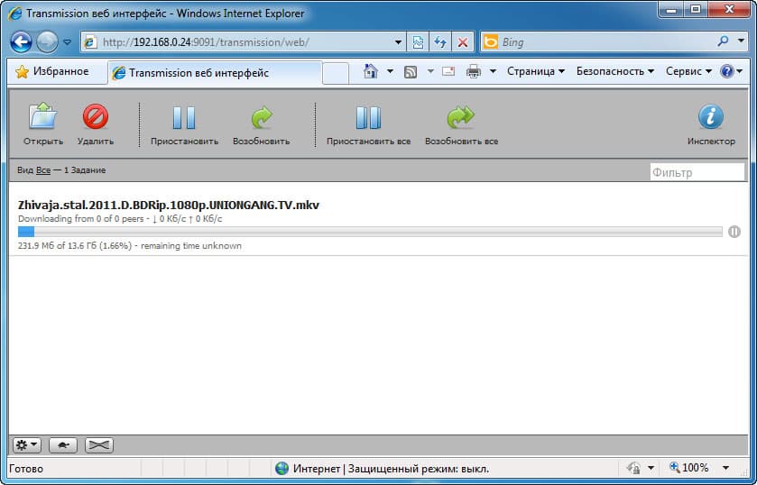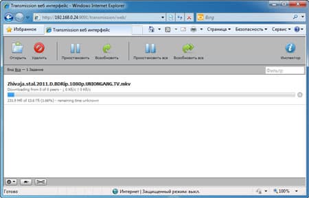 И ещё один больной вопрос: а что с торрентами? Разумеется, нужный клиент присутствует в плеере, какой же это будет сетевой комбайн, да без торрентов… Здесь torrent-клиент реализован на привычном для Linux-систем Transmission, управление которым обычно производится через веб-интерфейс с ПК, что не очень-то удобно — нужно запустить браузер, набрать в адресной строке конструкцию IP-адрес плеера:9091, после чего появится доступ к функционально ограниченному инструменту.