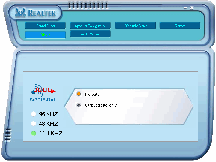 В настройках цифрового интерфейса — на вкладке «SPDIF» доступен выбор частоты семплирования и кнопка выключения.
