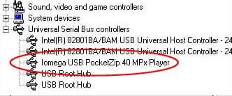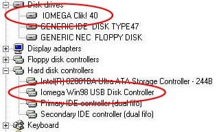 После установки драйверов необходимо перезагрузить компьютер и можно подключать к нему Hip-Zip. При подключении произойдет автоопределение устройства, и в системе появиться съемный диск PocketZip 40. Так как он является обычным съемным диском то с ним можно производить все операции свойственные подобным устройствам, вплоть до сжатия даблспейсом :) А вот так он отметился в системном реестре: