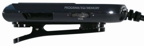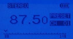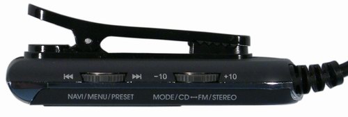 Пользователь может осуществлять поиск станций в этом диапазоне с шагом 0.05 МГц. Имеется память на 20 станций. В качестве антенны, как обычно, используется шнур наушников. Наушники, которые идут в комплекте с плеером, имеют очень короткий кабель. На мой взгляд, это отрицательно повлияло на качество приема, так как при использовании наушников Koss Porta pro чувствительность приемника была явно лучше. Для того, чтобы попасть в «режим приемника», пользователю необходимо нажать и подержать кнопку Mode/CD<->FM/Stereo на пульте ДУ. Приемник имеет два вида поиска станций. Первый — Preset-режим, когда выбор осуществляется из 20 заранее записанных в память станций. Второй — свободный поиск по диапазону, который можно осуществлять с помощью качающихся кнопок ДУ с шагом 0,05 МГц. Если сдвинуть кнопку и подержать ее, то приемник будет сканировать диапазон в этом направлении до тех пор, пока не поймает первую станцию. Также у приемника есть возможность автоматически сканировать диапазон и записывать все найденные станции в память. Плеер обладает памятью и автоматически запоминает последние установки приемника перед выключением. Кнопку Stop в режиме приемника теперь можно использовать для временного отключения звука (Mute).