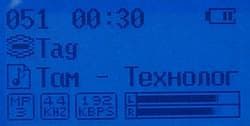 - File Name — имя файла, если есть ID3-тэг, то он отображается в режиме бегущей строки. Предпочтение отдается старшим версиям тэгов