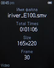 Видеоплеер способен воспроизводить видео собственного формата SMV, для кодирования в него файлов на диске, идущем в комплекте, имеется программа. Разрешения экрана 176*220 пикселей и 30 кадров в секунду, с которыми кодируется видео фирменной программой, хватает для более-менее удобного просмотра мультиков, и вообще видео, где не так важны мелкие детали. Их, разумеется, не рассмотреть на таком маленьком экране с таким маленьким разрешением. Функция вторична, и это не оспоришь.