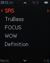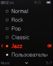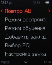 Имеется контекстное меню, состав и функциональность которого во многом повторяют предшествующую модель. Отмечу лишь положительные сдвиги и новые функции. Появился «Режим обучения», при котором из песни проигрывается только определенный, заданный вами отрезок времени. Появилась возможность устанавливать закладки, но судя по отзывам владельцев, эта возможность появилась и в T6 в новых прошивках. Можно изменять скорость сканирования (скорость перемотки внутри трека), скорость воспроизведения, включать/отключать отображение текста песни, если тот вшит в тег. Ну и, разумеется, настройки звучания: пятиполосный эквалайзер, уже настроенные предустановки, SRS WOW HD, Fade In (плавное нарастание звука). Никуда не делась важная многим возможность просмотра дополнительной информации о треке — такой, как битрейт, частота дискретизации, название альбома, и прочей.