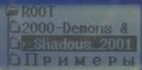 Навигация осуществляется помощью качающейся кнопки NAVI/MENU и кнопки Stop. Поиск композиций можно вести, не прерывая прослушивания. Русские названия каталогов нормально отображаются. Если имя директории очень длинное, то через пару секунд после того, как вы установите на нее курсор, начнется его прокрутка в режиме бегущей строки. Помимо этого, у плеера имеется возможность с помощью специальных кнопок перескакивать сразу на 10 композиций вперед или назад.