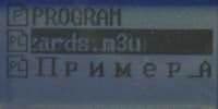 Также у плеера есть возможность программирования списка проигрывания, то есть при желании вы можете оперативно составить свой плейлист из тех файлов, что есть на диске. Это делается достаточно просто и не утомительно. Однако теперь мы вплотную подошли к одной из разрекламированных "вкусностей" плеера, а именно, поддержке плэйлистов в формате WinAmp *.m3u. Плеер способен распознать до 20 плэйлистов на диске. В плэйлистах также поддерживаются русские имена файлов. Применение плэйлистов, на мой взгляд, очень удобно, так как пользователь может составить и сохранить подходящие комбинации из композиций имеющихся на диске и, не утруждая себя поиском, быстро запустить соответствующий настроению набор.