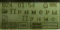 Споры о необходимости встроенного в плеер FM-тюнера идут давно. Однако для себя, я решил что встроенный приемник в плеере должен быть обязательно, поскольку энергии батареек он потребляет всего ничего, а послушать свежие новости всегда бывает полезно. Приемник работает в стандартном диапазоне 87,5–108 МГц. Пользователь может осуществлять поиск станций в этом диапазоне с шагом 0,1 МГц. Имеется память на 20 станций. В качестве антенны, как обычно, используются шнуры наушников и пульта ДУ. На фото вы видите LCD экран в режиме работы приемника.