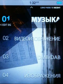 Меню плееров iriver всегда интересное и симпатичное. Так и в этот раз. На каждый пункт — будь то Музыка, Видео, Текст и т. д., устанавливается своя фоновая картинка. По умолчанию это разные пейзажи, которые вполне неплохо смотрятся. Если нажать «Влево», на каждый пункт можно установить свою собственную фоновую картинку.