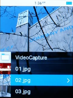 Браузер изображений довольно интересный. Вы выбираете файл, и тут же вверху открывается мини-картинка. Не сказать, что это очень удобно, просто необычно и интересно. Рядом с названием файла тоже есть еще одно мини-превью. Открыв картинку, ее можно увеличить до пяти раз. Делать это не очень удобно — надо заходить в опции, там выбрать масштаб и так далее. По увеличенному изображению потом можно перемещаться, чтобы посмотреть все его части. Разумеется, есть слайд-шоу, время перехода можно установить. Поддерживаются форматы JPG, GIF, PNG, BMP.