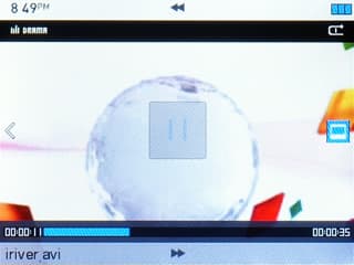 В плеере установлен стандартный экран разрешения 320×240 пикселей (QVGA), при диагонали 2,8″ пиксели отчетливо видны, изображение не выглядит «живо». Непонятно, почему компания не создаст плеер с похожими характеристиками, но при этом с дисплеем с широкоэкранным соотношением сторон — смотреть фильмы можно было бы с гораздо большим комфортом. Углы обзора хорошие, кроме угла сверху — там инверсия цветов наступает при малейшем отклонении от прямого угла. Это может вызвать дискомфорт при просмотре фильма вдвоем. По цветам претензий нет, экран яркий и контрастный.