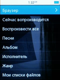 Музыка упорядочивается в библиотеку из стандартных пунктов Браузер, Песни, Альбом, Исполнитель, Жанр, Мои списки файлов, Наибольший рейтинг, Список закладок. Первый пункт (Браузер) открывает обычные папки с файлами. Удобно, что он стоит первым — многие люди не любят автоматическую сортировку и пользуются проводником, если он есть.