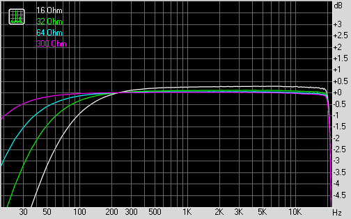 | Тест | 16 Ohm | 32 Ohm | 64 Ohm | 300 Ohm |