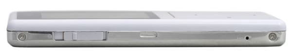 На левом торце находится ползунок, который при сдвижении вверх включает/выключает плеер, а вниз — защелкивается и блокирует сенсорные кнопки. Расположение его не вызывает никаких неудобств в использовании. В положение блокировки он сдвигается свободно, а вот при включении и выключении — несколько тугой.