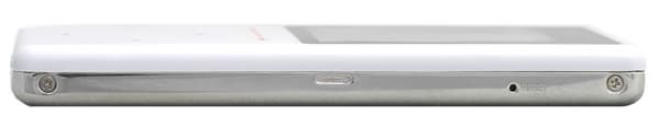Лицевая часть плеера пластиковая. Пластик этот глянцевый, и, соответственно, маркий. На белом корпусе это не столь заметно, как не столь заметны и царапинки, которые непременно возникнут на нем. Кстати, как передняя, так и задняя части девайса идеально ровные, поэтому ничто не запрещает наклеить по крайней мере на лицевую часть защитную пленку.