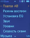 По традиции, которая появилась вместе с плеерами на основе системы управления D-Click, меню опций открывается долгим нажатием «Вправо». Там можно зациклить участок трека, сменить режим воспроизведения, настроить эквалайзер, оценить трек (установить от одной до пяти звезд), установить скорость перемотки, удалить файл, просмотреть информацию о проигрываемом файле. С некоторыми пунктами и так все понятно, о некоторых скажу подробнее.
