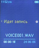 Функция, традиционно присутствующая практически во всех плеерах в принципе, и в iriver’ах в частности. В отличие от первых флэш плееров нет никаких настроек записи по таймеру или прочих подобных. Настроить можно лишь качество записи (непонятно, почему это нельзя было сделать в FM-приемнике). Нам предлагают варианты качества «Низкий», «Средний» и «Высокий», что означает 44 Кбит/с при 11 кГц, 88 Кбит/сек при 22 кГц и 177 Кбит/с при 44 кГц соответственно. Запись также ведется в формат ADPCM WAV.
