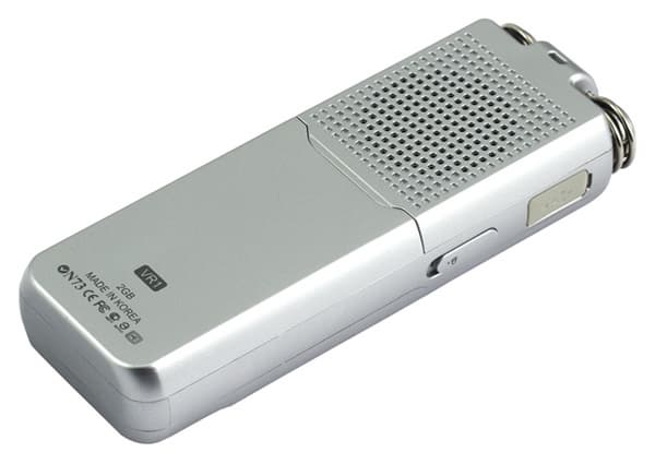 Внешний стереомикрофон не выигрывает по качеству записи у встроенного, но может помочь, когда вы хотите само устройство спрятать, а микрофон прикрепить к одежде. Если есть желание остаться совсем незамеченным, то поможет ушной микрофон. Также в инструкции сказано о существовании режима «Скрытая запись», при котором экран не светится, а диод не корпусе не мигает. Но обнаружить эту функцию мне так и не удалось, в инструкции же ничего не сказано о том, как ее включить — указано только, что она вообще есть. Точно то же с режимом, когда файлы записываются в скрытую папку: этот режим где-то спрятан, и если у вас будет большое желание, вы его, может быть, найдете.