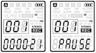 Управление диктофоном, как я уже сказал, нельзя назвать интуитивно понятным. Но со временем, разумеется, все неудобства отпадут — надо только хорошенько прочесть инструкцию и попрактиковаться. Запись включается соответствующей кнопкой, обведенной красным кружочком. Диктофон можно сначала включить, потом совершать запись, а можно сразу нажать на кнопку записи выключенного диктофона, и как только тот включится, запись сразу же начнется с последними заданными параметрами и в последнюю из выбранных папок.