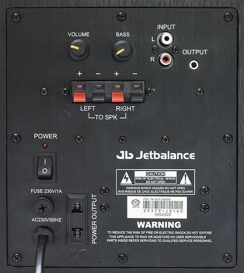 При субъективном тестировании сабвуфер подключался к профессиональной звуковой карте ESI Juli@. Производитель комплектует сабвуфер двумя проводами для подключения: стерео мини-джек на стерео RCA и стерео RCA на стерео RCA. Длина проводов составляет 1 метр и 2 метра соответственно. При тестировании сабвуфер подключался к стереоколонкам JetBalance JB-381.