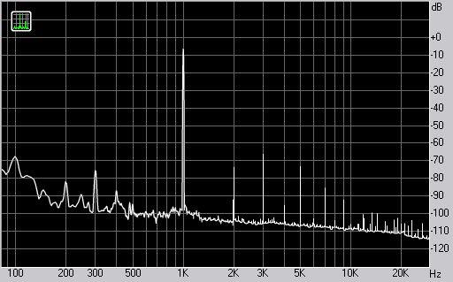 Спектр сигнала, воспроизводимого колонкой при подаче частоты 1 кГц