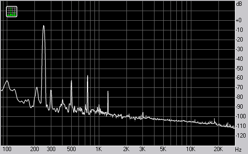 Спектр сигнала, воспроизводимого колонкой при подаче частоты 250 Гц