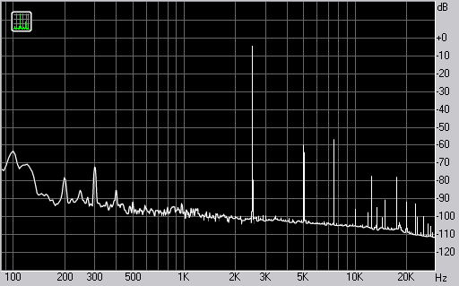 Спектр сигнала, воспроизводимого колонкой при подаче частоты 2,5 кГц