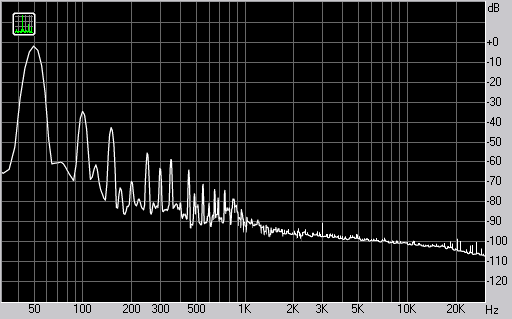 Спектр сигнала, воспроизводимого колонкой при подаче частоты 50 Гц