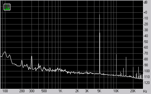 Спектр сигнала, воспроизводимого колонкой при подаче частоты 5 кГц