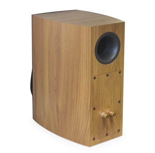 Акустическим оформлением колонок является схема фазоинвертор. Порт ФИ выведен на заднюю панель и расположен в верхней части. Корпус колонок изготовлен из фибролита. Производитель предлагает три варианта расцветки корпуса. У нас был экземпляр светло-коричневой отделки. Еще имеется черный и темно-коричневый цвет.
