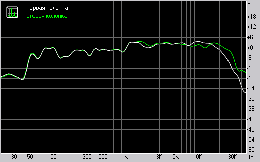 Графики АЧХ разных колонок совпадают. Наиболее важный диапазон имеет аналогичные результаты. Незначительные изменения, наблюдающиеся в ВЧ области, можно во внимание не брать.