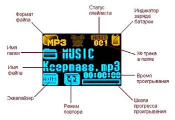 Выше KM-300 сравнивался c NEXX NF-510 не просто так. Эти модели объединяет главная новинка ушедшего года на плеерном рынке — OLED дисплей, особенности которого я как раз недавно подробно описывал в статье, посвященной NF-510. Что порадовало — Keepmass удалось избежать главной ошибки маркетологов NEXX — позиционирования дисплея как цветного, так что никаких картинок KM-300 вам посмотреть не предложит (и хорошо — одним потенциальным разочарованием, типа того, что было в прошлый раз, меньше :)). Цветовых зон на дисплее всего две: оранжевая сверху и голубая снизу, по 16 оттенков на каждую.