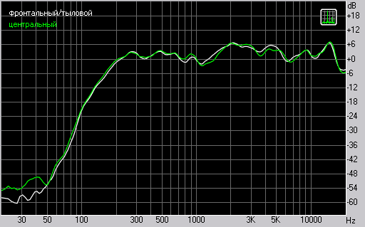 Как и следовало ожидать, рабочий диапазон сателлитов начинается от 150 Гц. График АЧХ имеет достаточно большую изрезанность. Неравномерность в диапазоне 150 Гц — 20 кГц составляет ±6 дБ.