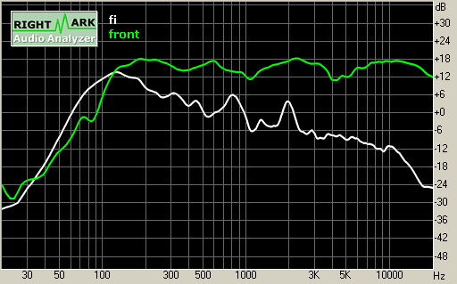 Графики АЧХ сателлита, измеренные на оси динамиков и перед отверстием фазоинвертора